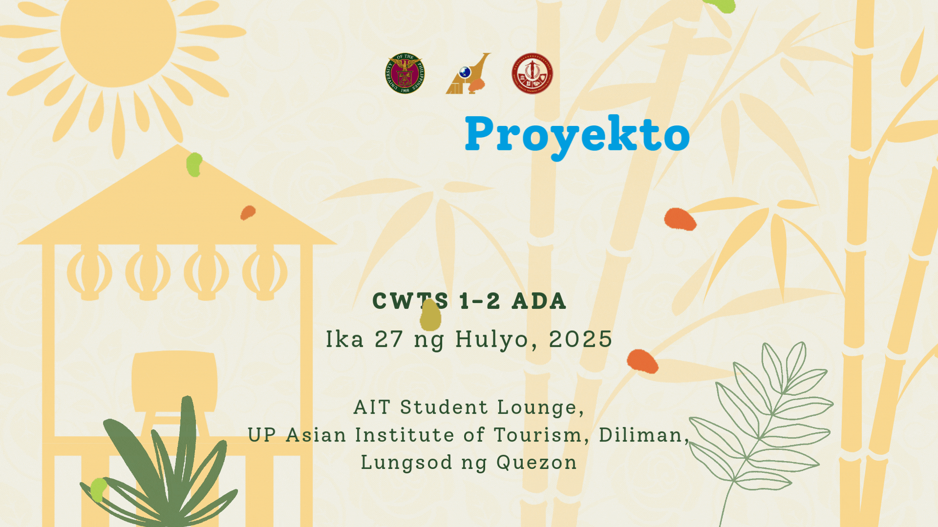 "Proyekto Mayumi: Pagsibol ng Kabataang Maka-sining at Maka-kultura" (Project Mayumi: Developing Artistic and Cultural Youth) (Mayumi: a Filipino word meaning modest, tender, and gentle) was a whole-day program that introduced the children of the communities of the University of the Philippines, Diliman, to the Philippine arts and culture.This program was part of our NSTP-CWTS class, where I was elected head of the Creatives Committee for the event, creating various publication materials (posters, slides, illustrations, among others).Please note that I do not own any of the above animations and assets, and are only resources from Canva that I used to create these designs.