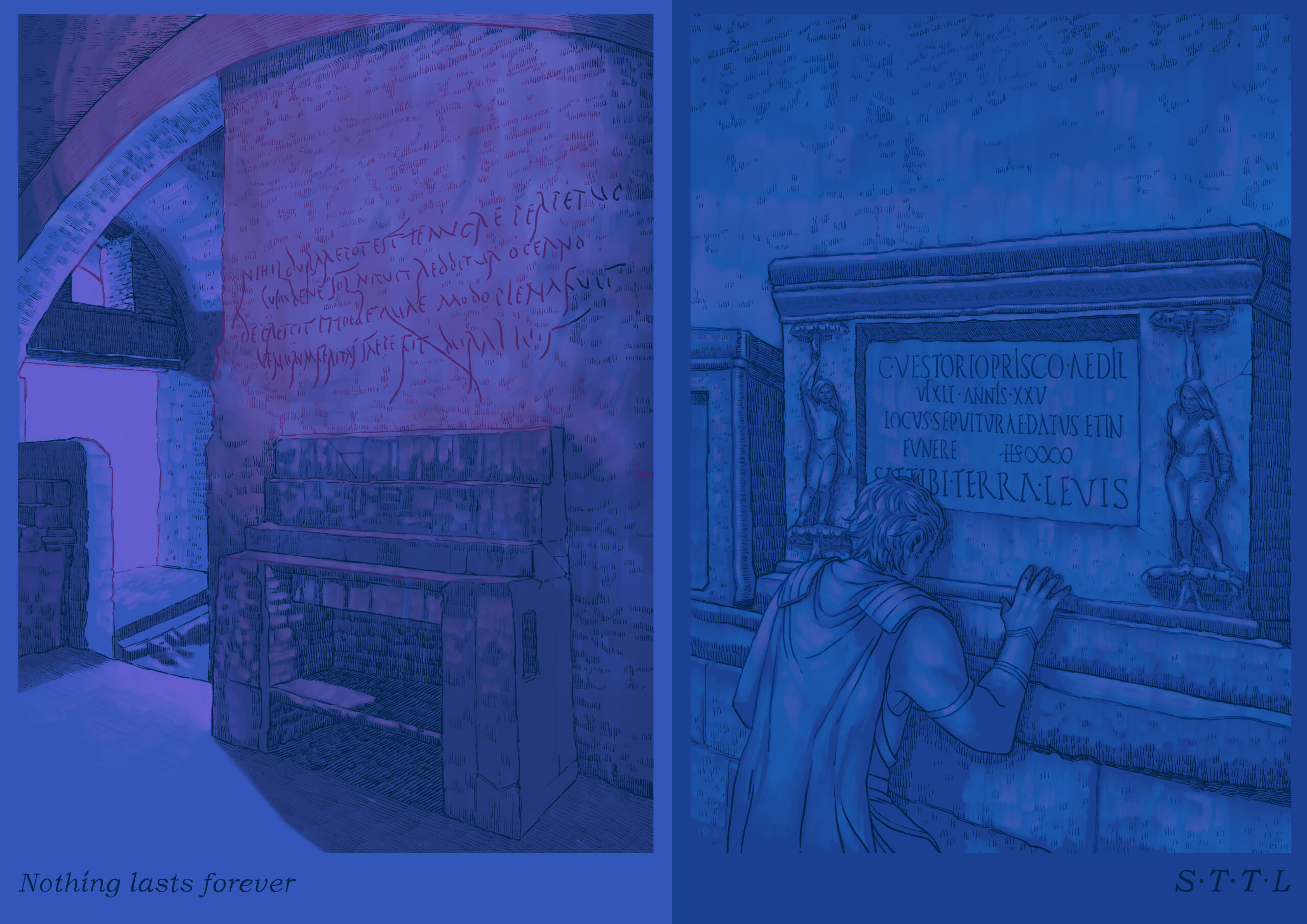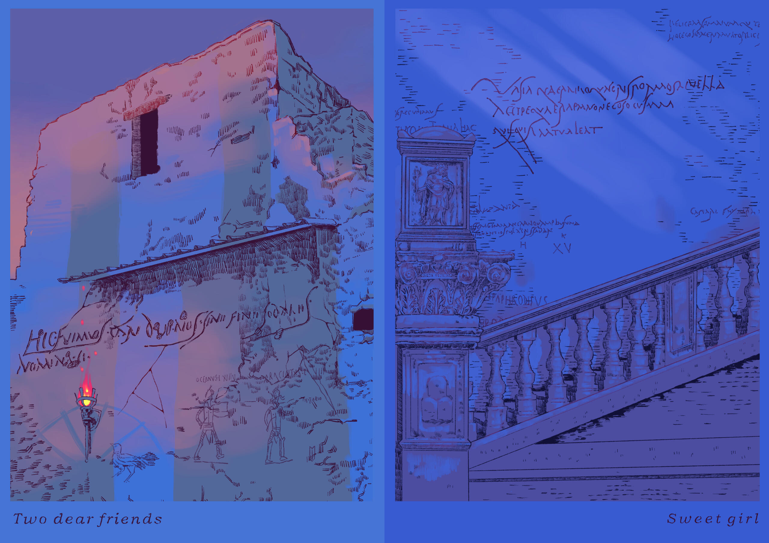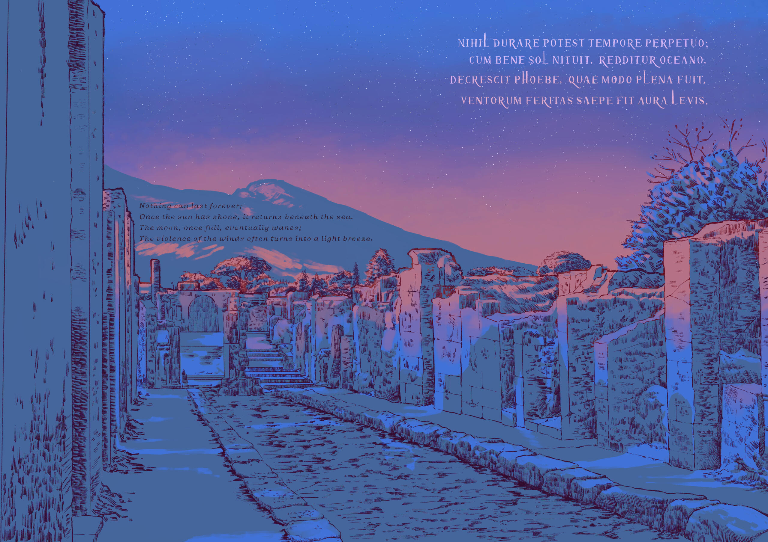 "The Walls Remember" is a 12-page zine featuring 9 illustrations that I made as a final requirement for one of my classes in 2024. It is based on Ancient Roman graffiti etched onto the walls of Pompeii and Herculaneum.